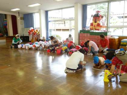 もし、地震がおきたら・・・という想定で避難訓練をしました。