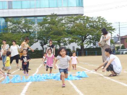 29日は幼稚園の運動会。そこに参加するお友達も広い広いグランドで走ってみました。