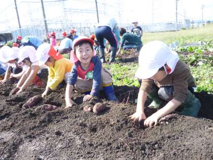 幼稚園のすぐ近くの芋畑にお芋堀に出かけました。