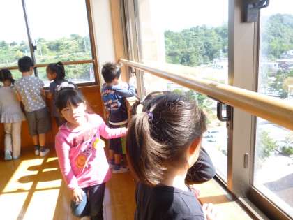 「あそこ、僕んち」「あっ、かまぼこドームまで見えるよ」「気持ちいいね」など、秘密の部屋に入った子ども達は大喜びでした。