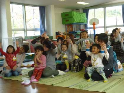 皆で先生のエプロンシアターを見たり、手遊びをしたりして遊びました。