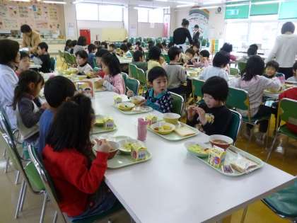 先輩のお兄さんたちが前に出て「いただきます」のごあいさつ。
