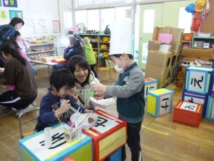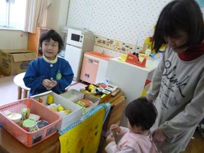 お部屋の中ではラーメン屋さんや焼きそば屋さん、たこ焼き屋さんなど、ママやパパのお客さんをお迎えして楽しそうでした。