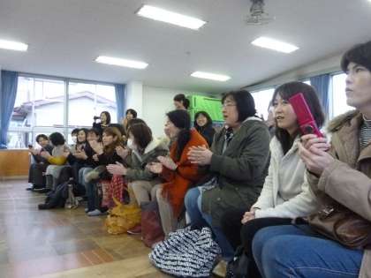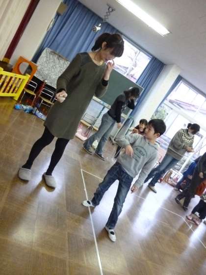 ママたちは、子どもたちに教えてもらって、こま回しにも挑戦してみました。