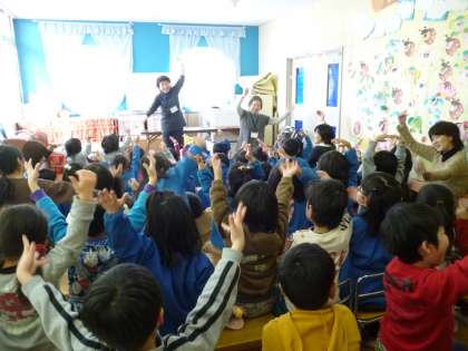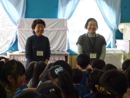 ボランティアで幼稚園に来て手遊びや紙芝居などを見せていただきました。