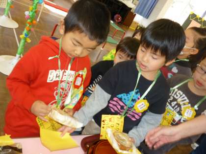 年少組さんのお世話をする年長組さんは、もうすっかりお兄さんお姉さんでした。