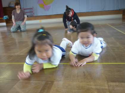 初めての体操教室でした。真剣な顔でかけっこしたりワニになったり楽しいひと時を過ごした3歳児さんでした。