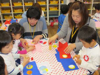 ママと一緒なので、気持ちも安定していたのか、一生懸命にこいのぼりを作りました。