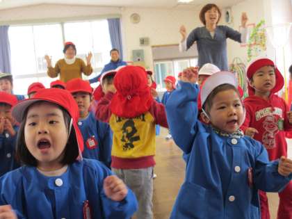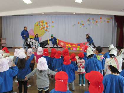 自分たちで作ったおおきなこいのぼりと一緒に、元気に体操をしました。