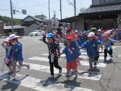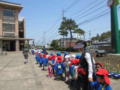 温かな日が続き、泣いていた3歳児さんもお兄さんお姉さんに手をつないでもらって安心しておでかけ。