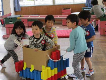 ジェットコースターは、お友達に引っ張ってもらったり押してもらったりなど、お友達とかかわって遊びました。
