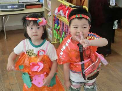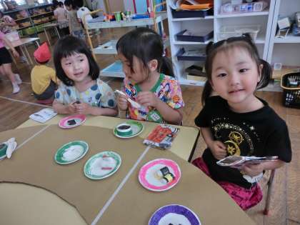 うさぎ組さんのお店屋さんに行きました。服屋さんでは、「この服お似合いですよ」と言われてさっそく試着してご機嫌です!回るお寿司やさんでは、迷ってしまうほどのメニューの中から「これ食べたい!」とおいしそうに食べていました。
