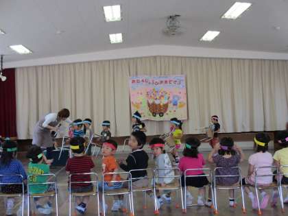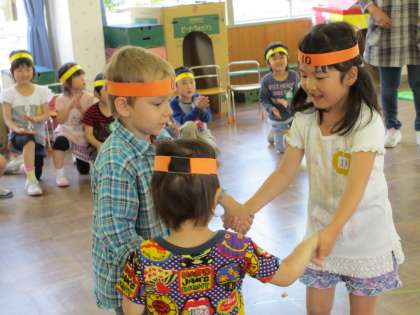 3歳児さん、4歳児さん、5歳児さんがみんなでフォークダンス。