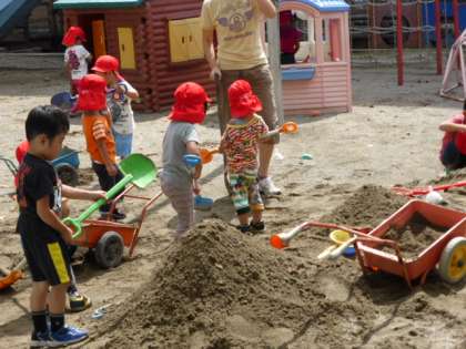 こんな基本的な行動の仕方を学んだ後は、思い切りお外で遊んでいる3歳児さん。