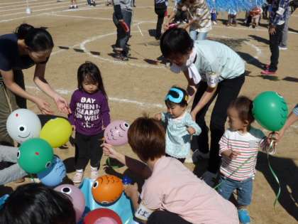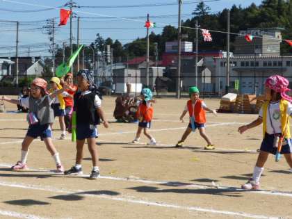 秋晴れの下、大沢野幼稚園のなかよし運動会を行いました。