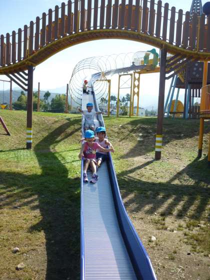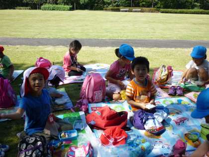 10月7日秋晴れのよいお天気、残暑(とても、暑い日でした)の中、立山町総合運動公園へ、遠足に行ってきました。初めて行った人も、以前に行ったことがある人も、子どもの広場で思いきり遊んできました。ながぁい、ながぁい滑り台が人気で、みんなでつながって滑ってくると、まるで、ジェットコースターのようでした。お母さんの手作りお弁当が、とってもおいしかったね。お母さん、おいしいお弁当ありがとう。