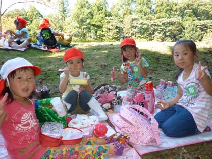 沢山遊んだ後のお弁当タイムは、「いただきまぁす!」と愛情たっぷりのごちそうを笑顔で食べていました。思いっきり遊んだ一日でした。