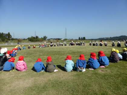 快晴の空の下。来年度1年生になる子ども達が一堂に会して、大沢野地区の幼保交流会を行いました。