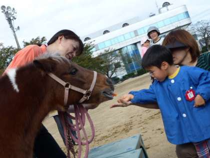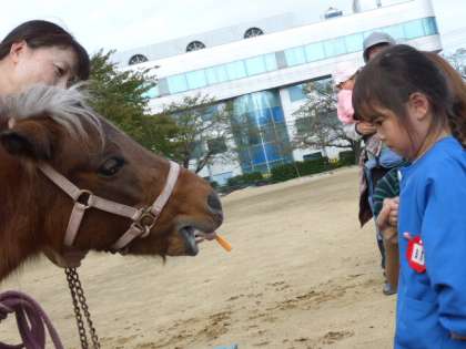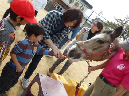 最後には、ニンジンをあげましたが、馬達もお腹がすいていたようで、ニンジンにかぶりつき子ども達もびっくり。