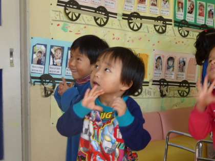 チャイコフスキー作曲くるみわり人形の曲に合わせて、キラキラお星様を輝かせたり、兵隊になってラッパを吹いたり・・・「パッパッカパッパッパッパッパ」「「パッパッカパッパッパッパッパ」と子ども達のかわいい声がこだまします。