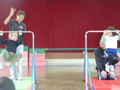 ツバメから前回り降り、そして力持ち・・・という難しい技を教えてもらいました。これが逆上がりの基礎となるようです。
