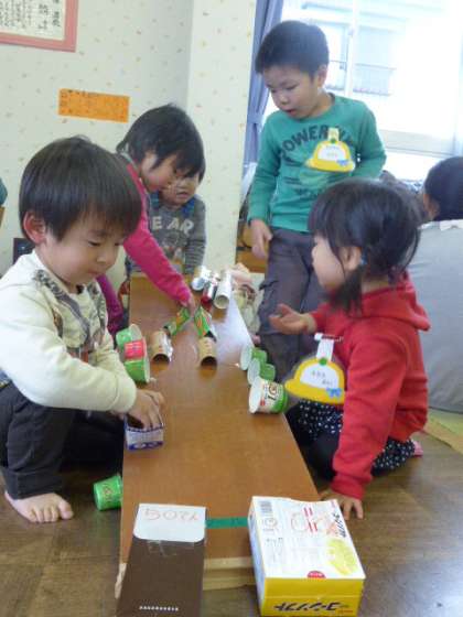 大きい組さんが作ってくれたお土産ももらって上機嫌の子ども達。