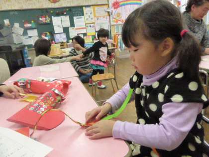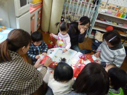 もうすぐ待ちに待ったクリスマス。サークルのお友達もかわいい長靴を作りました。