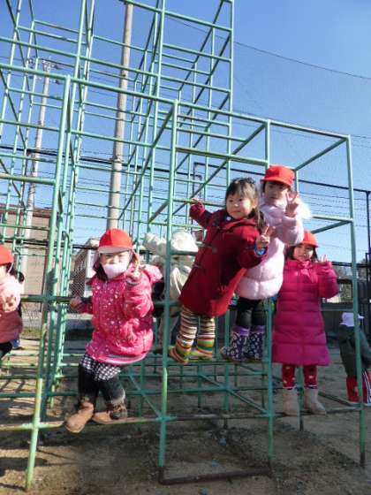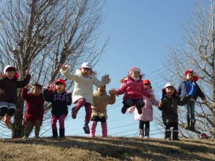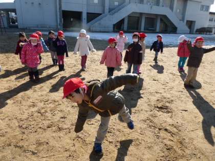 雪が溶けてみんなでグランドにお散歩。陰で氷を見つけたり、影が長くなっていることを楽しんだり、気持ちよく冬の一日をじっくり楽しんできた子どもたちでした。