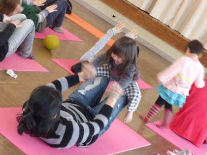 絵本サークルでは、ママ達の骨盤教室を行いました。