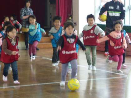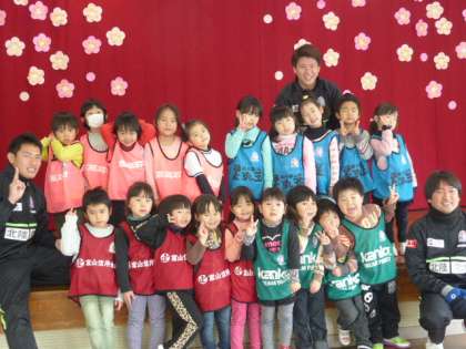 4歳児さんはカターレのお兄さん達にサッカーを教えてもらいました。