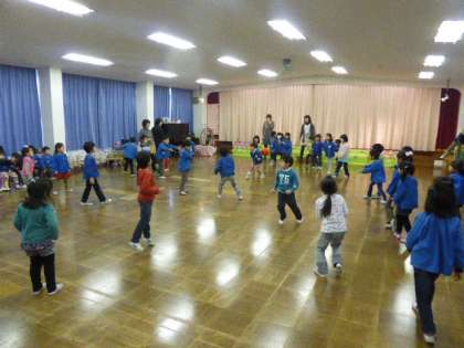 5歳児さんのおひざに座るゲームや、男の子対女の子のドッジボールなど楽しいゲームも沢山しました。