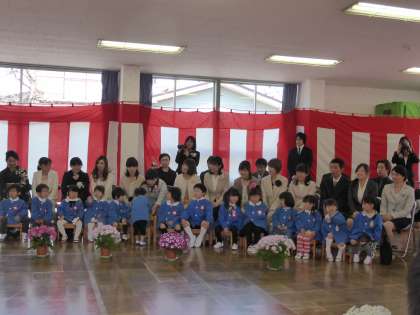 桜満開の暖かな日!28人の新しいお友達が大沢野幼稚園に入園されました。