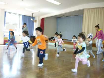 今年も、体操教室がスタートしました。初めて参加した3歳児さんでしたは、最初は緊張していた子ども達も「アンパンマン体操」をする内に笑顔になりました。ウサギになったりカエルになったりして体全体を動かして楽しく過ごしました。