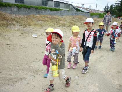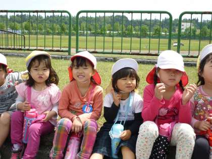 年長組さんに手をつないでもらい、全員で北銀記念グラウンドまで散歩に行ってきました。途中の道のりでは、タンポポや小鳥の姿を見て「タンポポ咲いてるよ」「すずめがいるね」と話をして楽しんでいる姿が見られました。