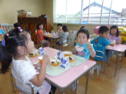 好き嫌いがだんだんなくなってきて給食を楽しみにしているひまわり組さんです。
