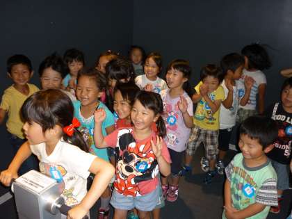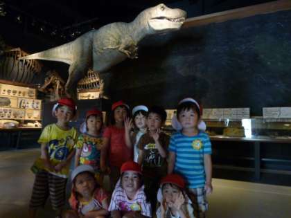 4歳児ひまわり組、5歳児うさぎ組の子供たちが路線バスに乗って科学博物館に行ってきました。プラネタリウム鑑賞では、室内が徐々に暗くになって星がたくさん浮かび上がると、うわぁきれいと子供たちは歓声をあげていました。また七夕の話やいろいろな星座の話を聞いてきました。そのあとは、強風を体験するコーナーやいろいろな実験コーナーを楽しんできました。恐竜のティラちゃんがガオーと吠えると、ドキッとしていた子供たちです。お昼は外でお弁当を嬉しそうに食べていました。楽しい1日を過ごして、帰りのバスではほとんどの子供たちが寝ていました。