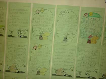 昨日は「なかよし発表会」の予行練習をしました。その時、年長児と交流活動をしている大沢野小学校5年生がお客さんとして、劇遊び「おしゃべりなたまごやき」を見に来てくれました。5年生が来てくれるということで嬉しさと緊張を感じていた年長児でしたが、一生懸命に発表していました。すると、そんな年長児に今朝、5年生から手紙が届きました。一人一人書いてくれた手紙には「セリフがはっきり聞こえて上手だったよ」「歌も踊りも可愛かったよ」「本番もこの調子で頑張ってね」など嬉しい励ましの言葉がたくさん書かれていました。一枚一枚読むと、その度に「やったー」と喜んでいた子供たちです。5年生からエールをもらって、ますますヤル気パワー全開になった子供たちです。