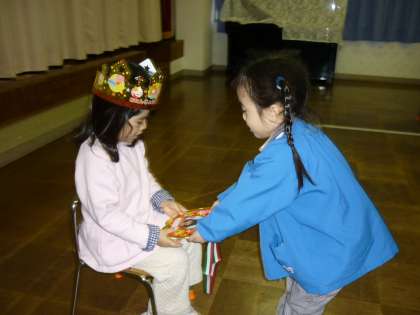 12月は、オンリーワンのお誕生会。皆から「おめでとう〜」とたくさん言ってもらい、嬉しそうに照れ笑いする姿がかわいらしかったです。