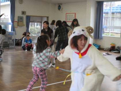 しっぽとりゲームでは、お家の方とペアになり、たくさん触れ合いながら、ニコニコ笑顔で遊んでいる子供たちがかわいらしかったです。