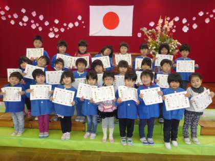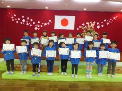 一人ずつ名前を呼んでもらい、園長先生から修了証書をいただきました。