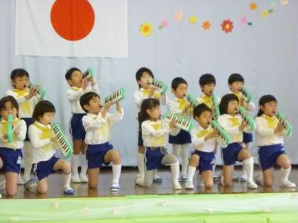 桜が満開になり、今日は入園式でした。ちょっぴり緊張した表情の新しいお友達でしたが、年中さんの手遊びや年長さんの「聖者の行進」の鍵盤ハーモニカを見たりして笑顔も見られました。新しいお友達を迎えて「やさしくしてあげるよ」「一緒に遊ぶよ」とはりきっている年長さんです。明日から元気に来てくださいね。