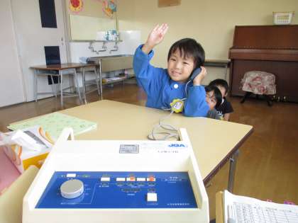 いつも元気な声でいっぱいの幼稚園ですが、検査のときは静かでした。みんなとってもよく聞こえるお耳でしたよ。