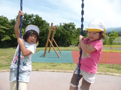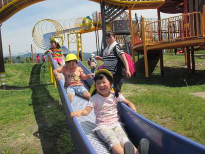 ピカピカのお日様の下、お家の人と一緒に立山総合公園へ遠足に行ってきました。
