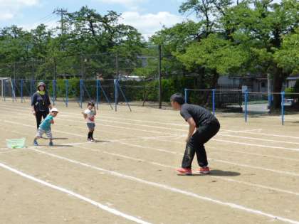 今日はいつも「ワイワイタイム」でお世話になっている、富山福祉短期大学の小川先生が来園され、体力測定をしました。準備体操をしたあと、ボール投げ・立ち幅跳び・25m走の3つのコーナーに分かれ測定へ。子供たちは「よーし頑張るぞ〜」と気合十分!力をふりしぼり、一生懸命頑張っていました。秋にもまた測定があります。次回はどれくらい伸びるか楽しみです…