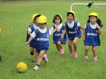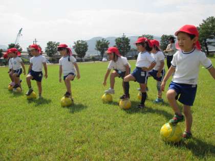 4歳児ひまわり組の子供たちは初めてのサッカー教室でしたが、「シュート決まっておもしろかったよ」「次のサッカー教室が楽しみ!」と楽しそうに話していました。