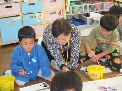 描きながら「あーはやく食べたいな」という声も聞こえてきて、11月4日のさつま汁パーティーを楽しみにしている子供たちです。