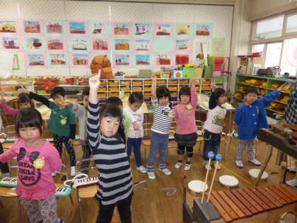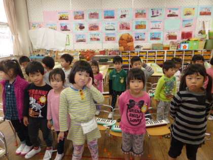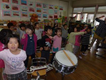 歌や合奏は、だんだん上手になって、リズムに乗って可愛い歌声が響いています。