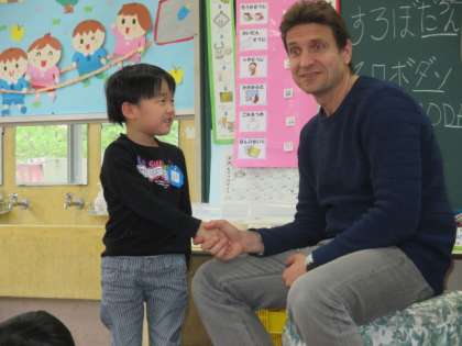 うさぎ組に進級した子供たちは、昨年の年長組がしていたハロータイムを楽しみにしていまた。今日は、初めてのハロータイムの日でした。