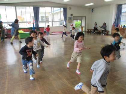 4歳児ひまわり組の子供たちは、氷鬼ごっこをして遊んでいます。