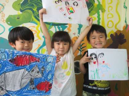 「何が楽しかった?」と聞くと、「水族館で、いろんな魚を見たのが楽しかった」「ママのお弁当おいしかったよ」「アスレチックで遊んだのがおもしろかった」など、みんなの前で上手に話すことができていました。
